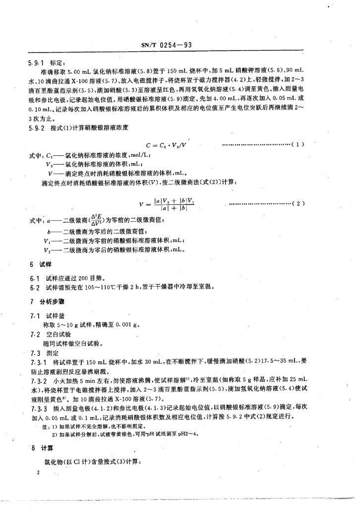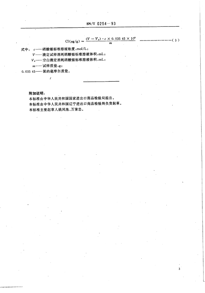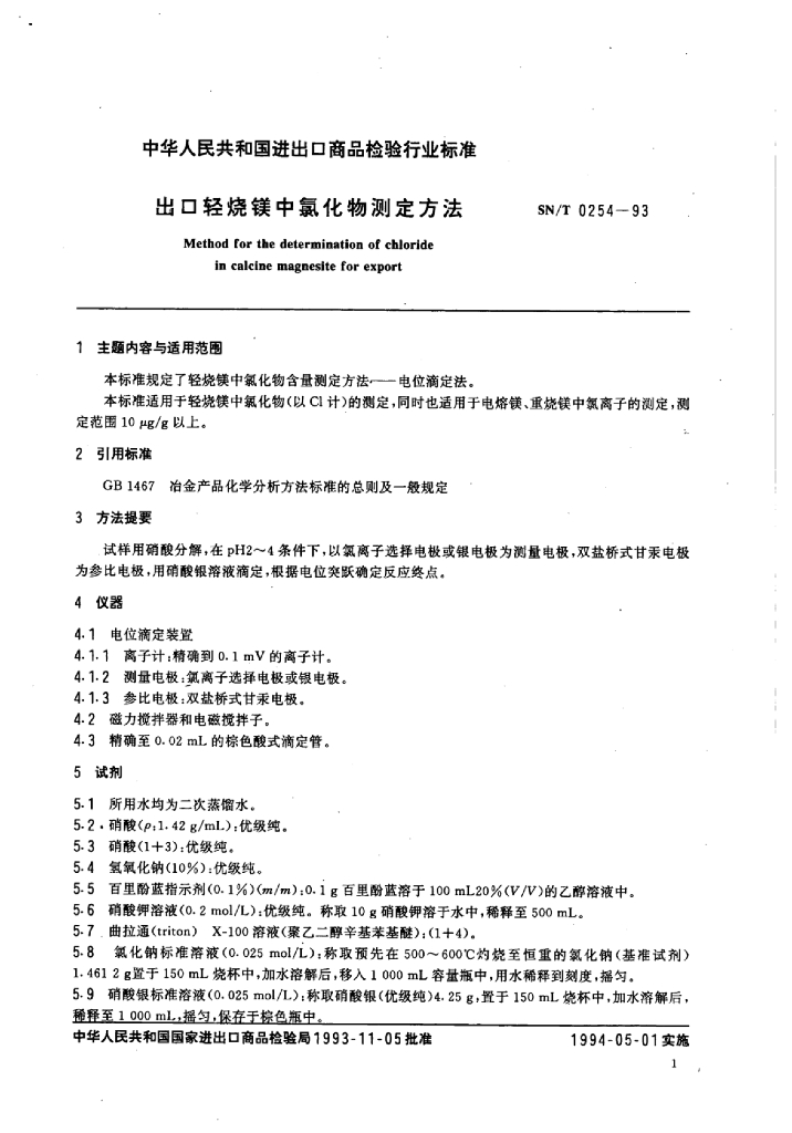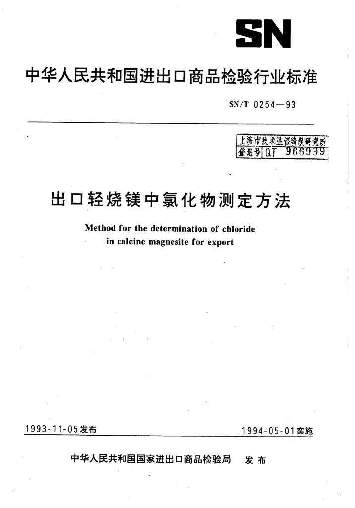 SN/T 0254-1993 出口轻烧镁中氯化物测定方法
