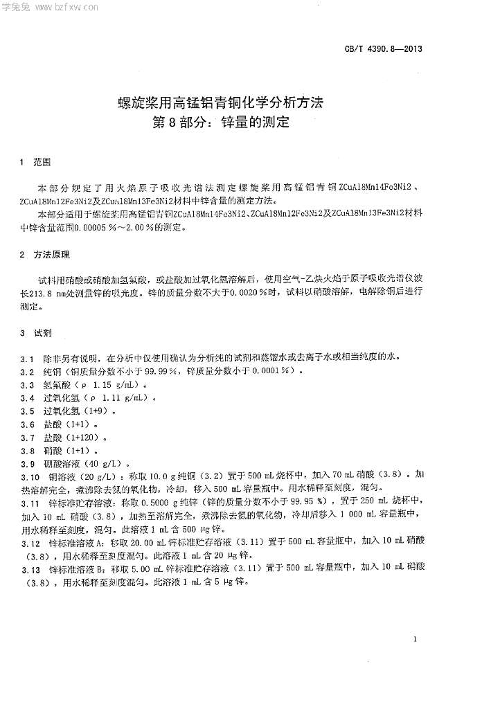 CB/T 4390.8-2013 螺旋桨用高锰铝青铜化学分析方法 第8部分:锌量的测定