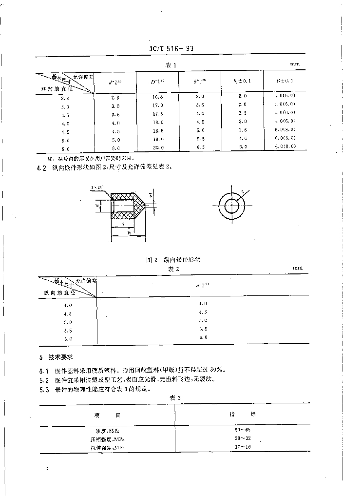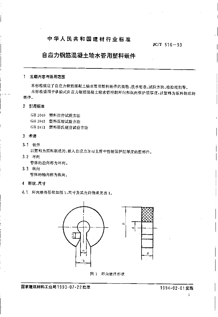 JC/T 516-1993 自应力钢筋混凝土输水管用塑料嵌件