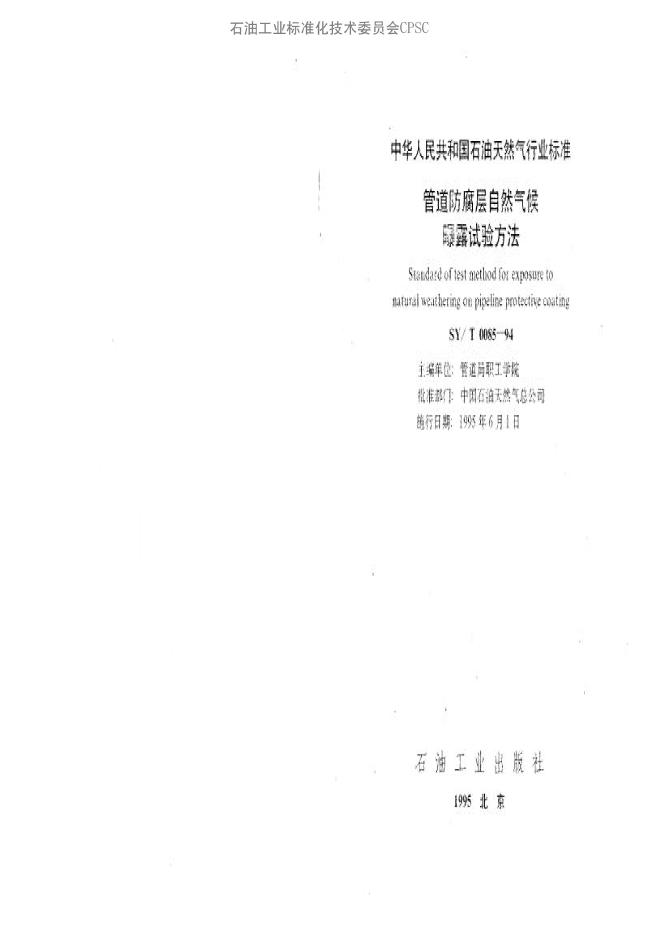SY/T 0085-1994 管道防腐层自然气候曝露试验方法