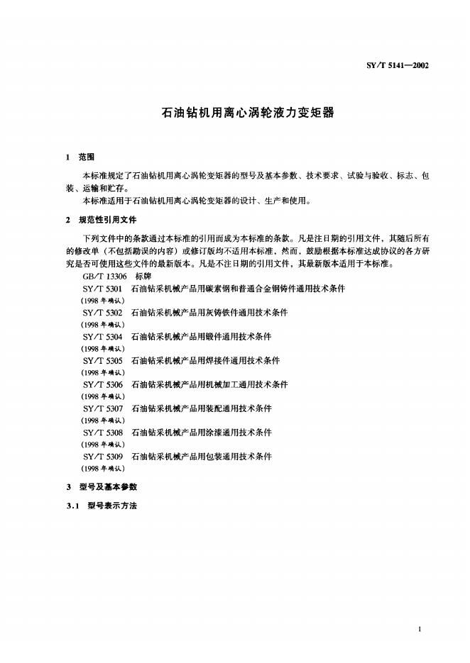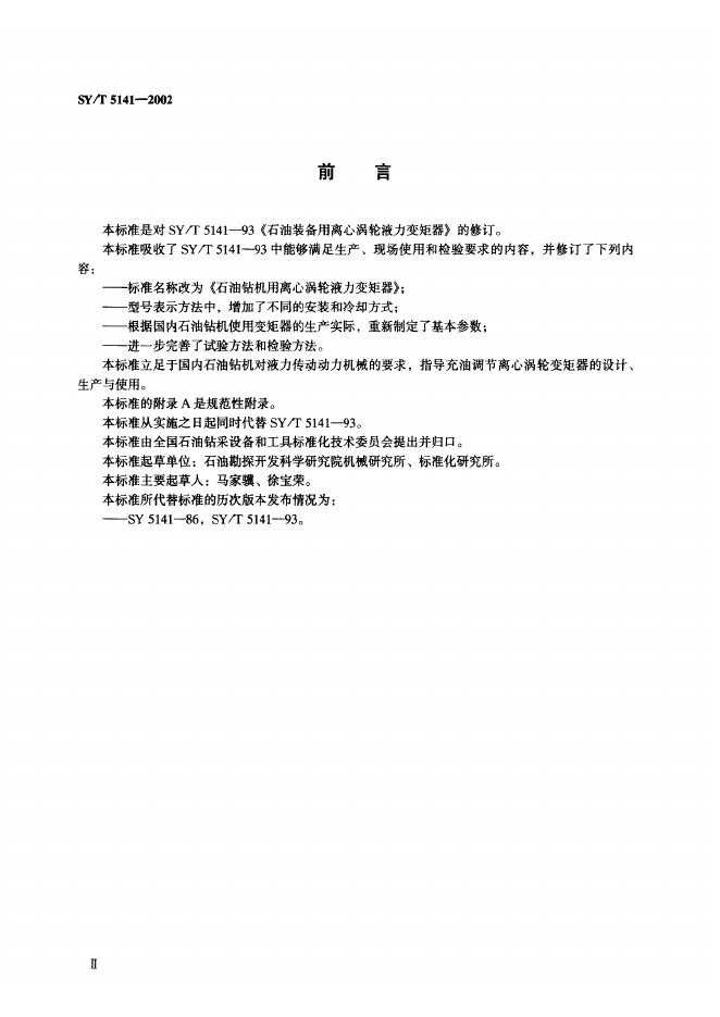 SY/T 5141-1993 石油装备用离心涡轮液力变距器