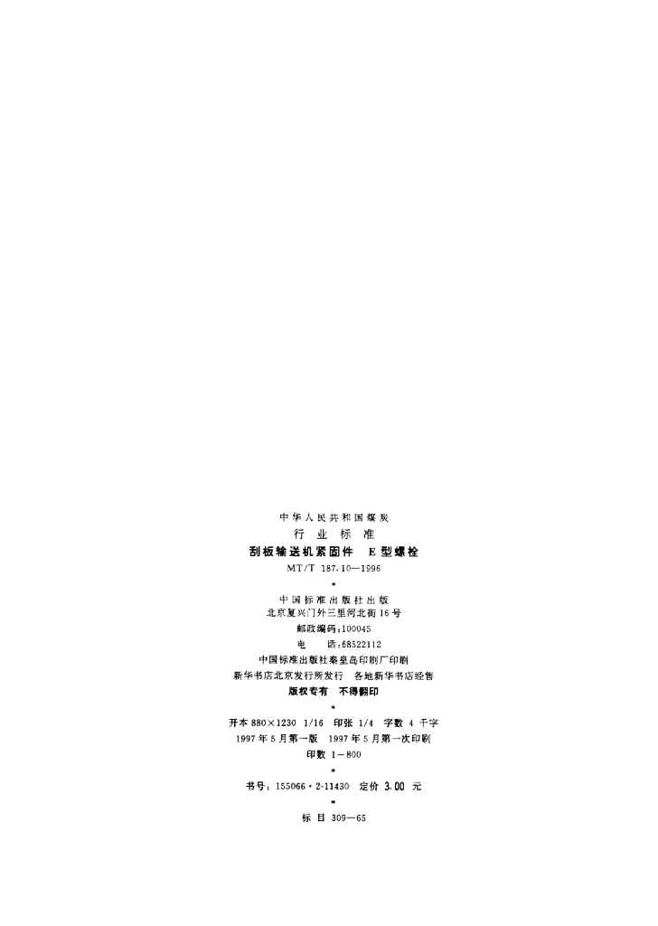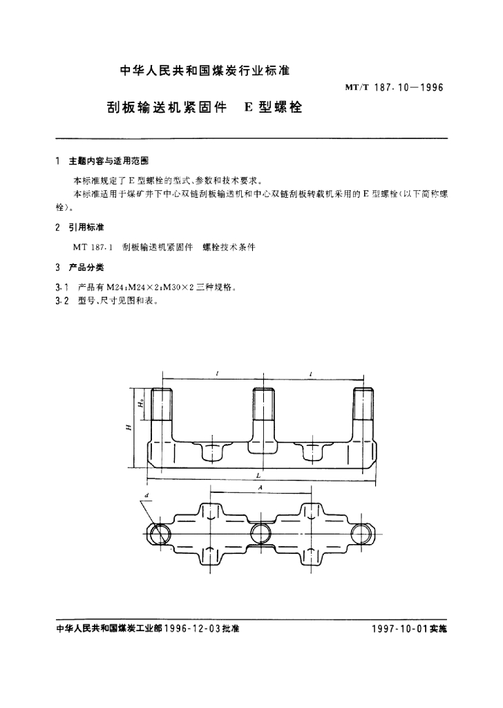 MT/T 187.10-1996 刮板输送机紧固件E型螺栓