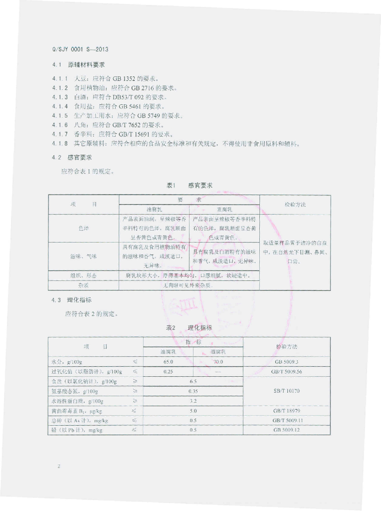 Q/SJY 0001S-2013 石林锦园调味品厂 腐乳