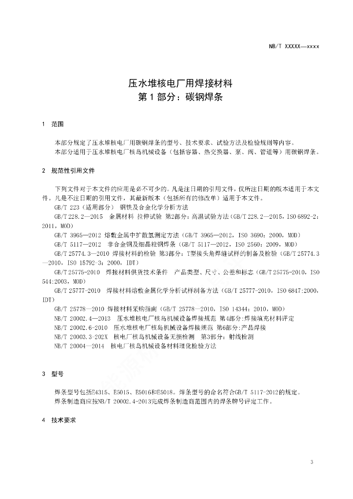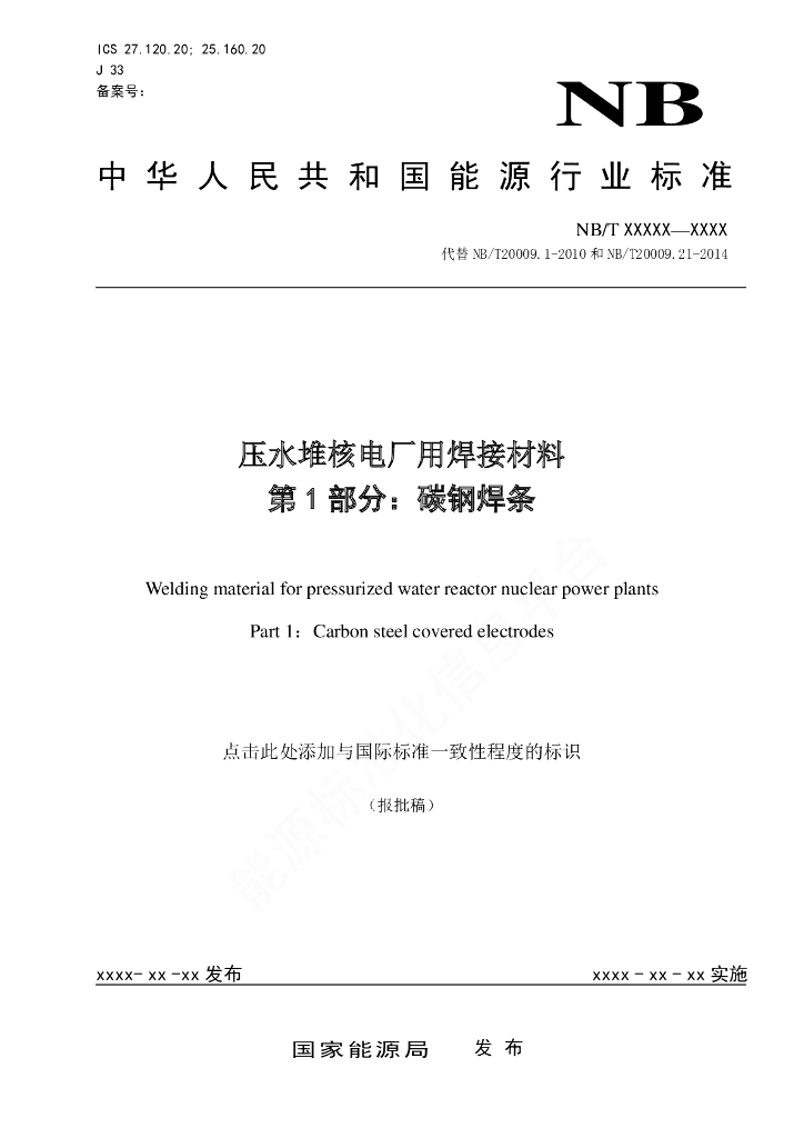 NB/T 20009.1-2021 压水堆核电厂用焊接材料 第1部分:碳钢焊条