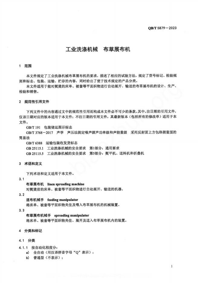 QB/T 5879-2023 工业洗涤机械 布草展布机
