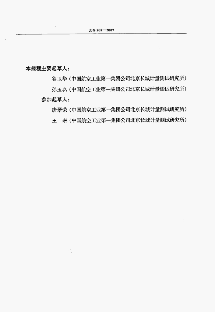 谷卫华(中国航空工业第一集团公司北京长城计量测试研究所)、孙玉玖(中国航空工业第一集团公司北京长城计量测试研究所)、唐翠荣(中国航空工业第一集团公司北京长城计量测试研究所)、王琳(中国航空工业第一集团公司北京长城计量测试研究所)