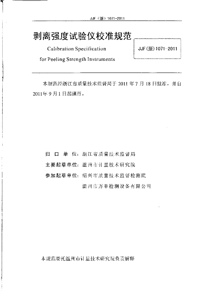 孙晓霆(温州市计量技术研究院)、郑茜(温州市计量技术研究院)、叶克仁(温州市计量技术研究院)、蒋占飞(绍兴市质量技术监督检测院)、王一翔(温州市万丰检测设备有限公司)