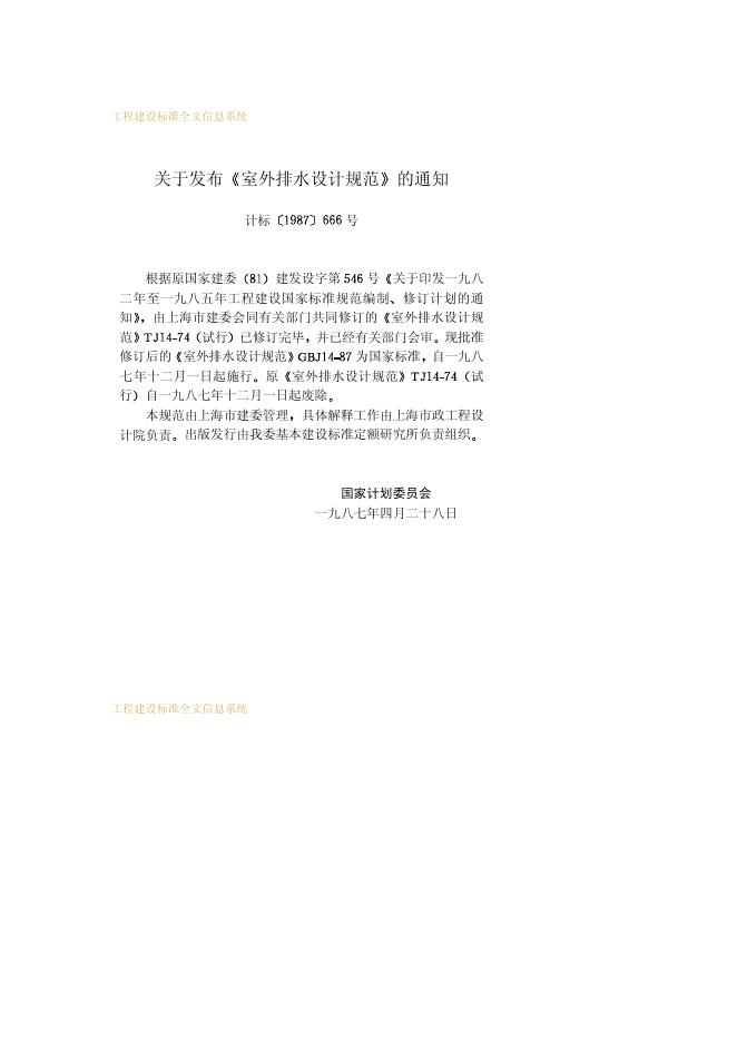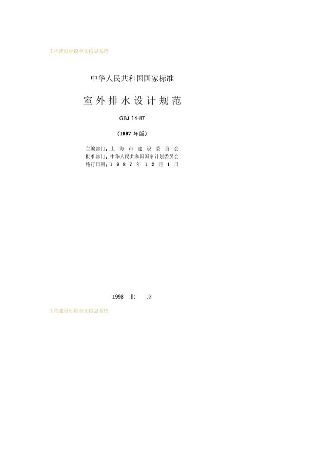 GBJ 14-1987 室外排水设计规范(1997年版)(附条文说明)
