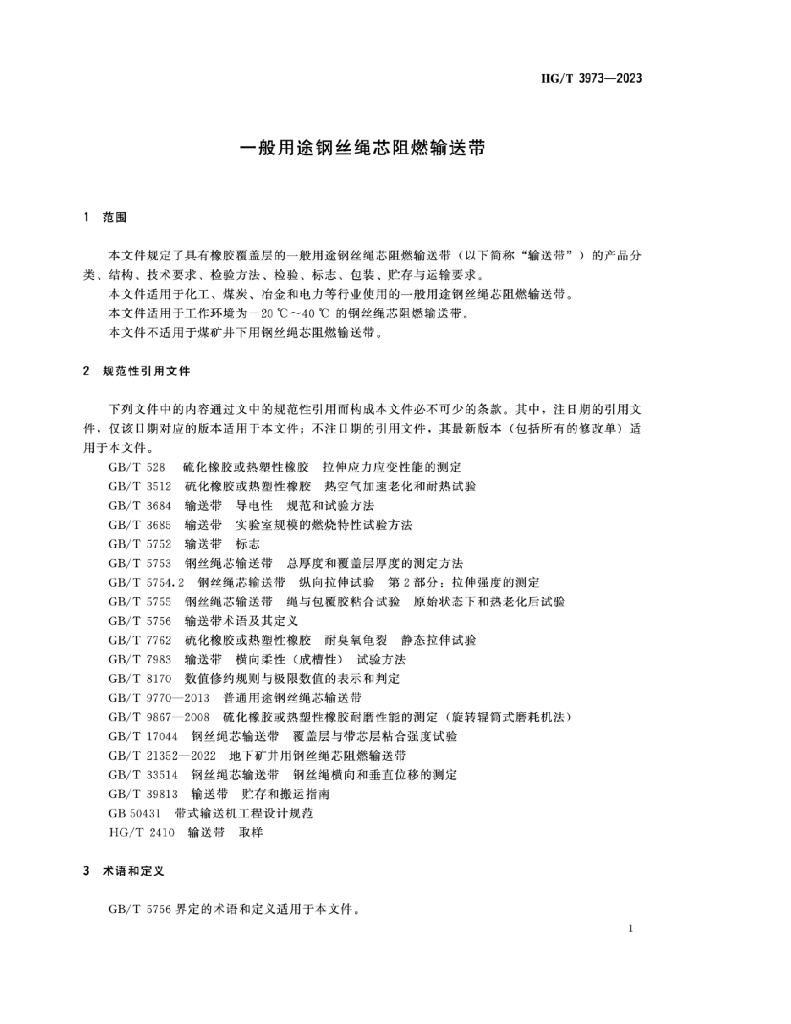 HG/T 3973-2023 一般用途钢丝绳芯阻燃输送带