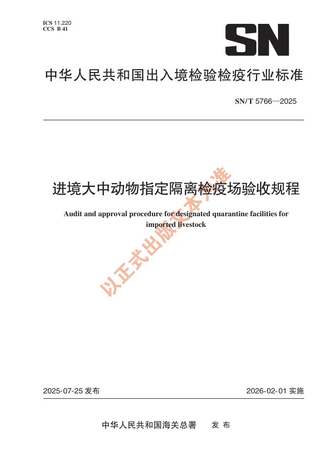 SN/T 5766-2025 进境大中动物指定隔离检疫场验收规程