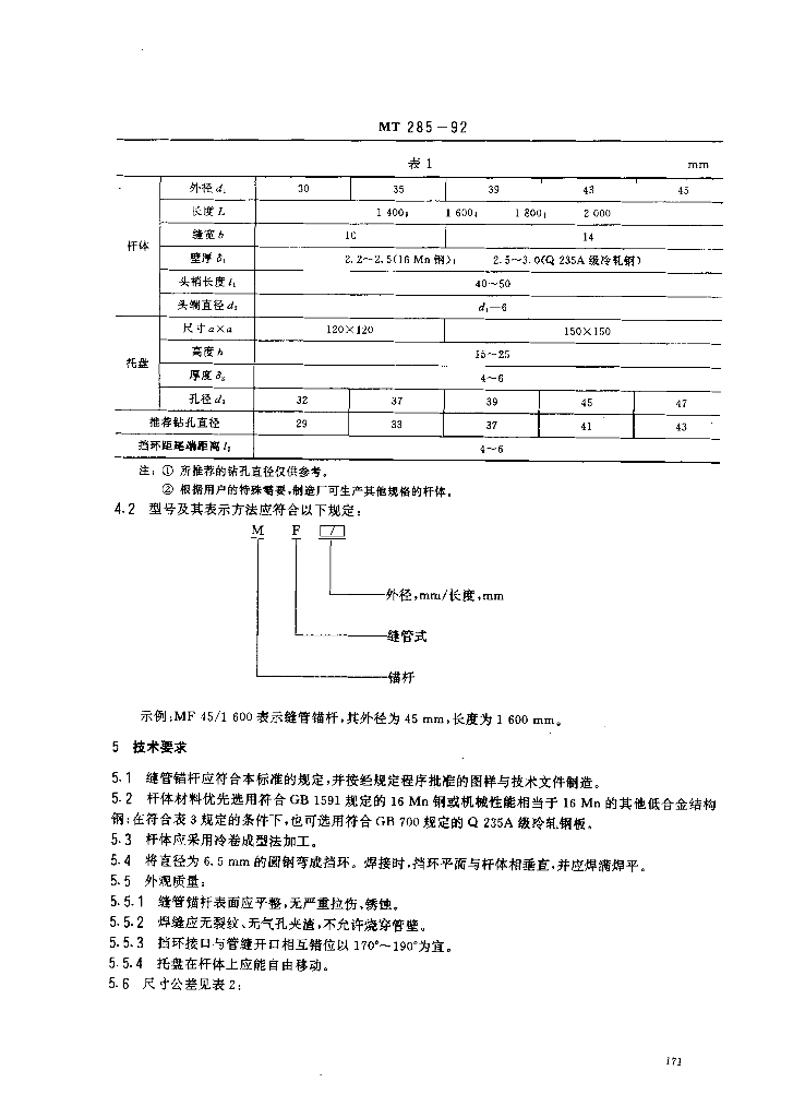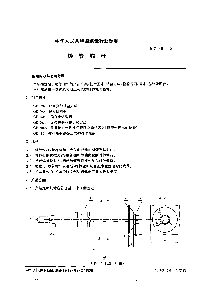 MT 285-1992 缝管锚杆