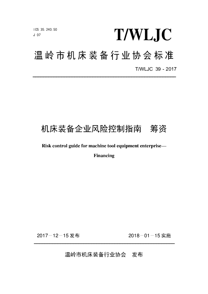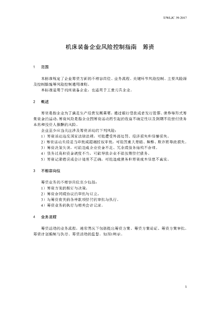 T/WLJC 39-2017 机床装备企业风险控制指南 筹资
