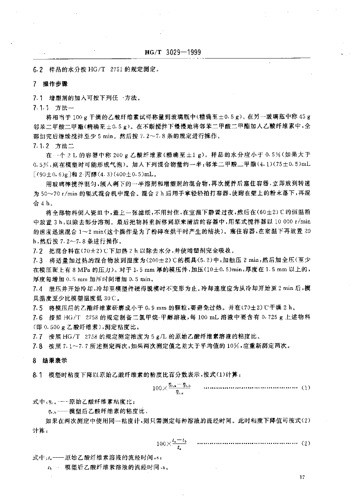 HG/T 3029-1999 乙酸纤维素模塑时粘度下降测定方法