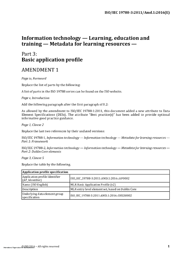 ISO/IEC 19788-3-2011/Amd 1-2016 修改单1:信息技术 学习,教育和培训 用于学习资源的元数据 第3部分:基本应用简介