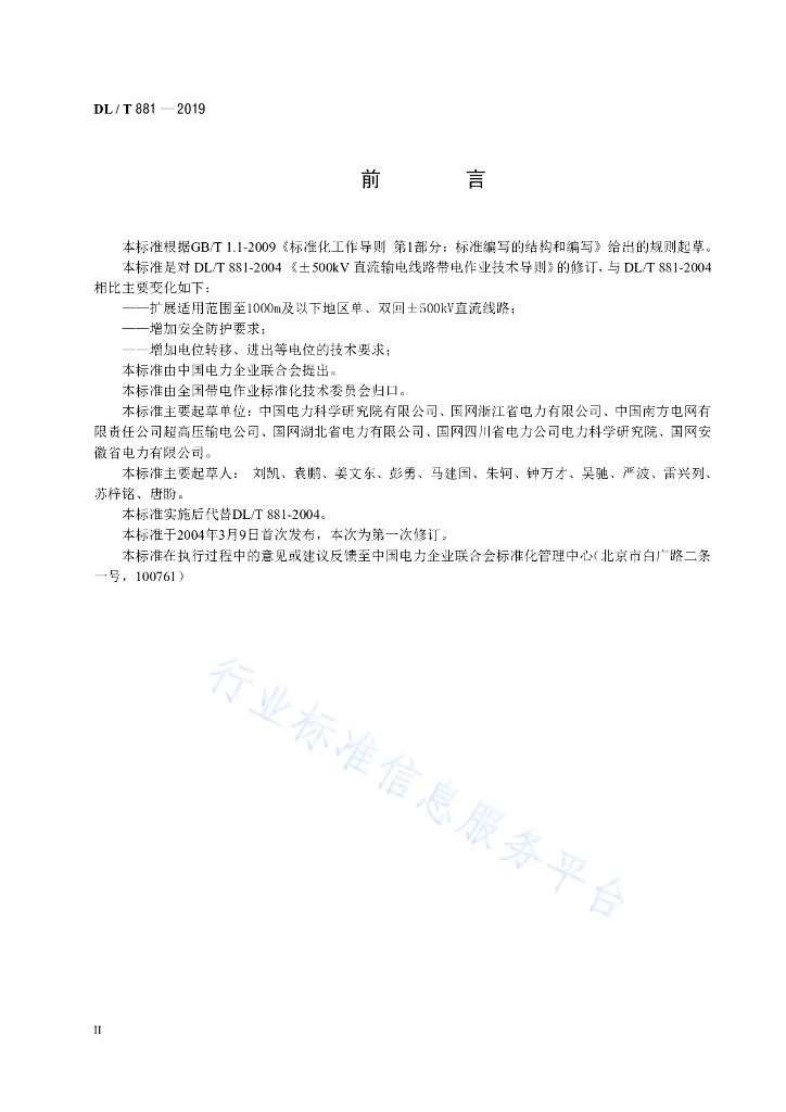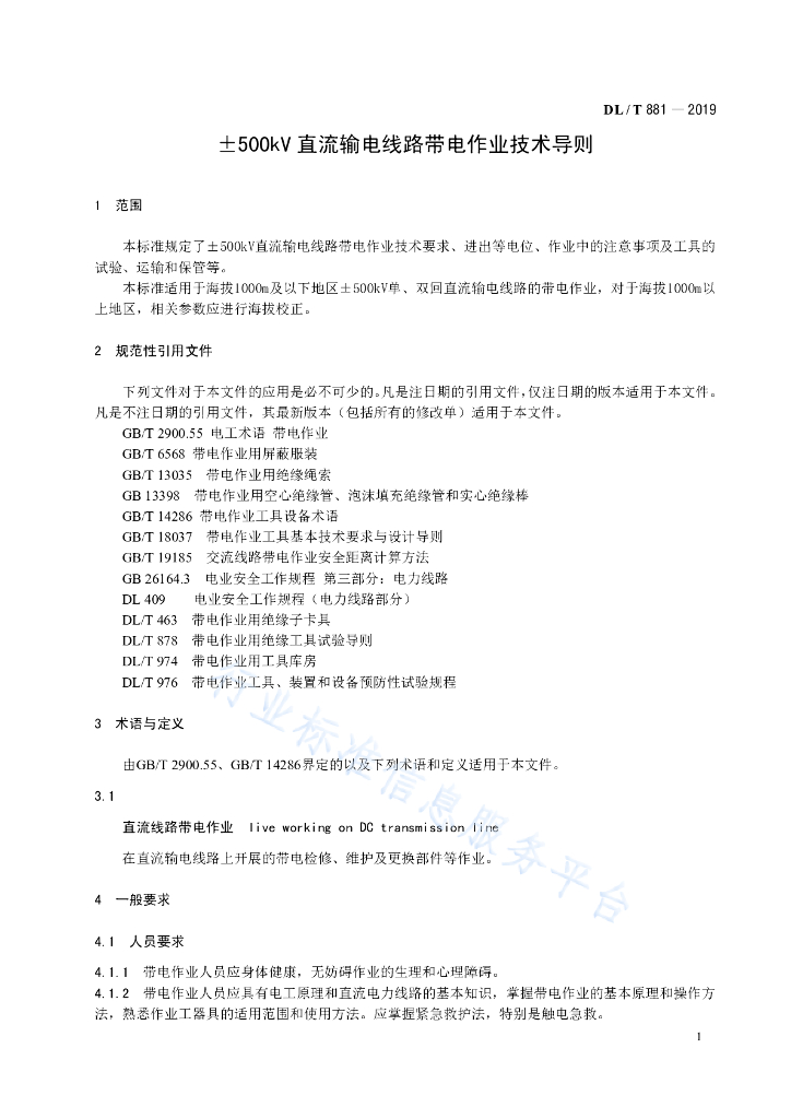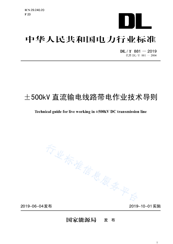 DL/T 881-2019 +500kV直流输电线路带电作业技术导则