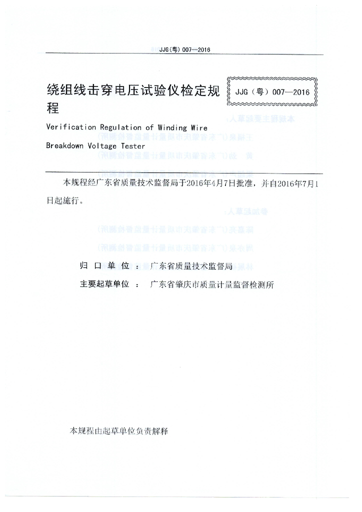 JJG(粤)007-2016 绕组线击穿电压试验仪检定规程