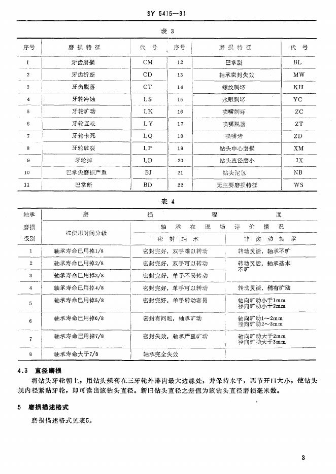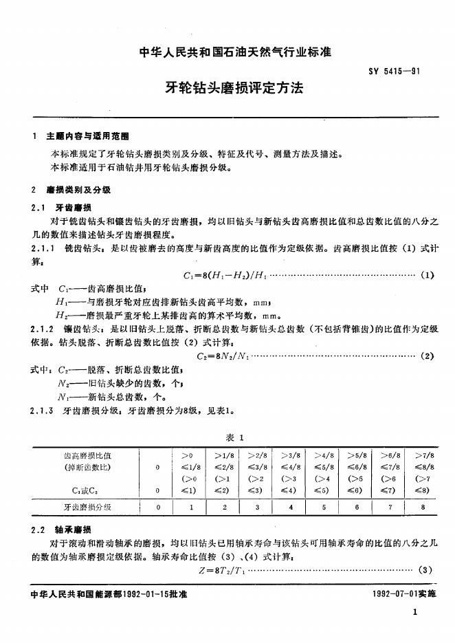 SY 5415-1991 牙轮钻头磨损评定方法