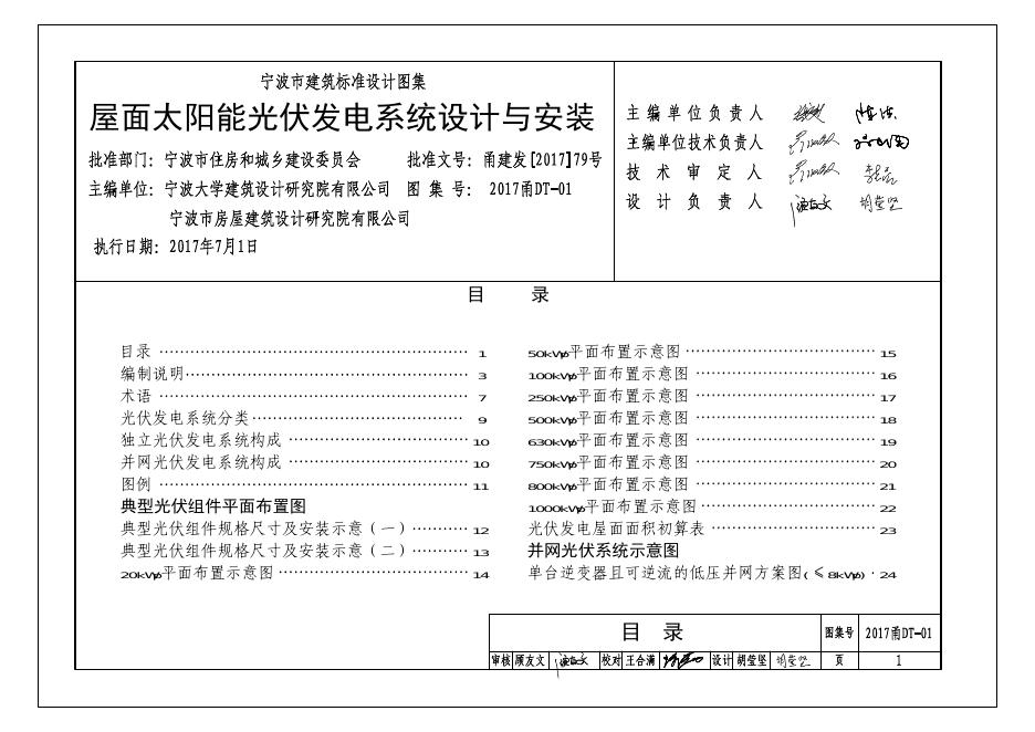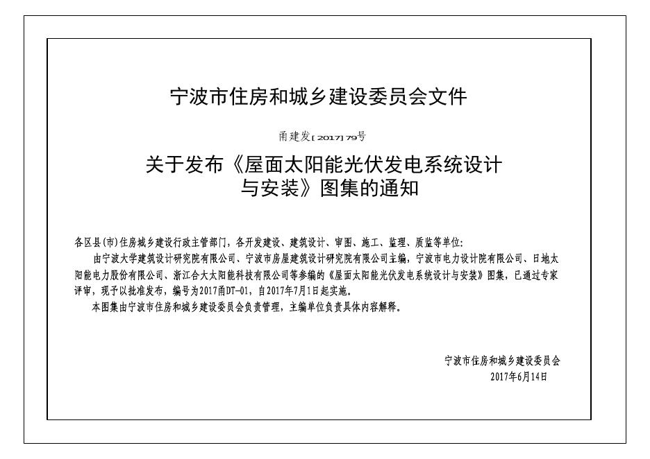 2017甬DT-01 屋面太阳能光伏发电系统设计与安装图集