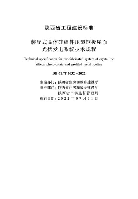 DB61/T 5032-2022 装配式晶体硅组件压型钢板屋面光伏发电系统技术规程