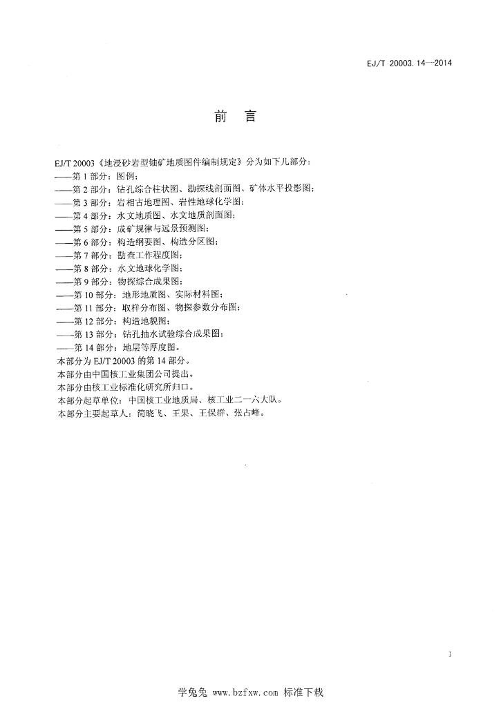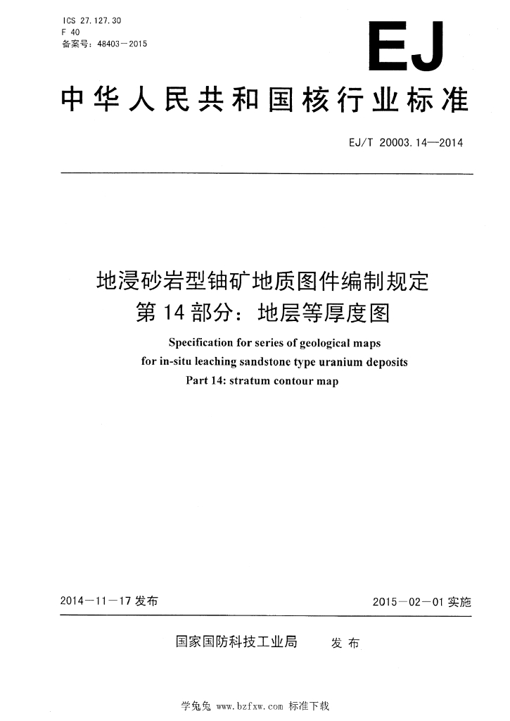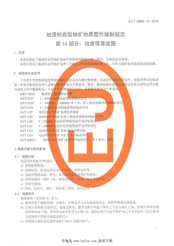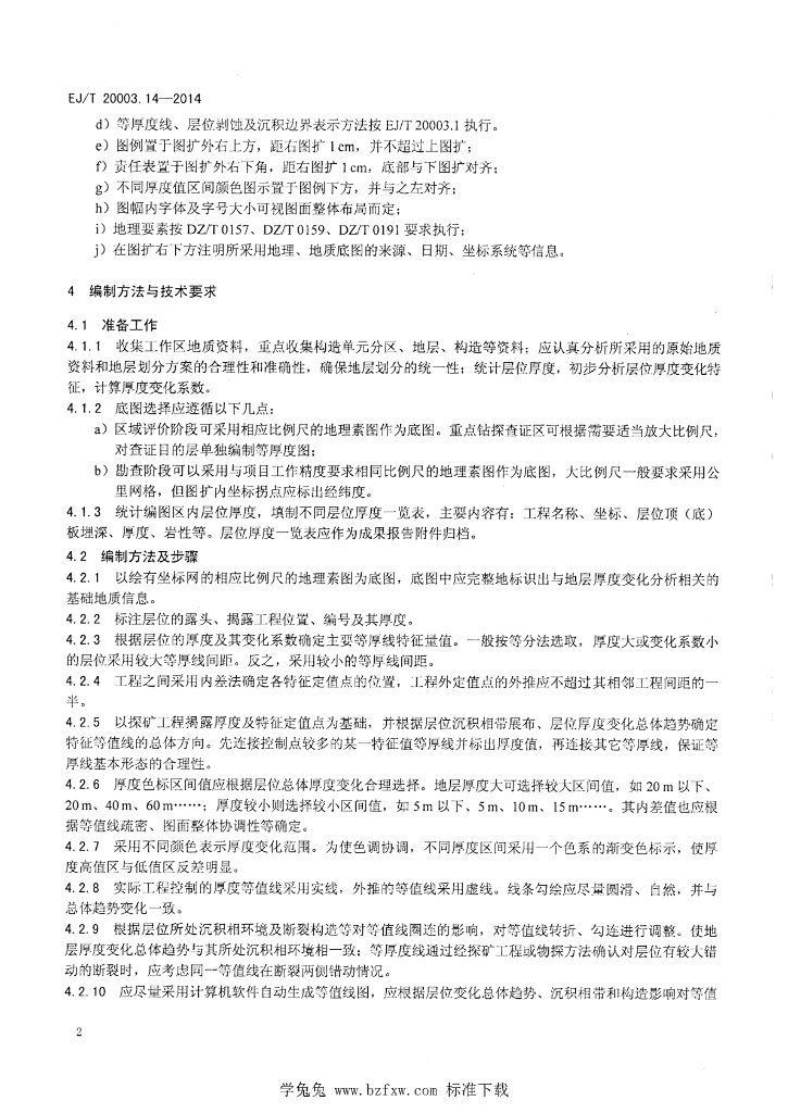 EJ/T 20003.14-2014 地浸砂岩型铀矿地质图件编制规定 第14部分:地层等厚度图