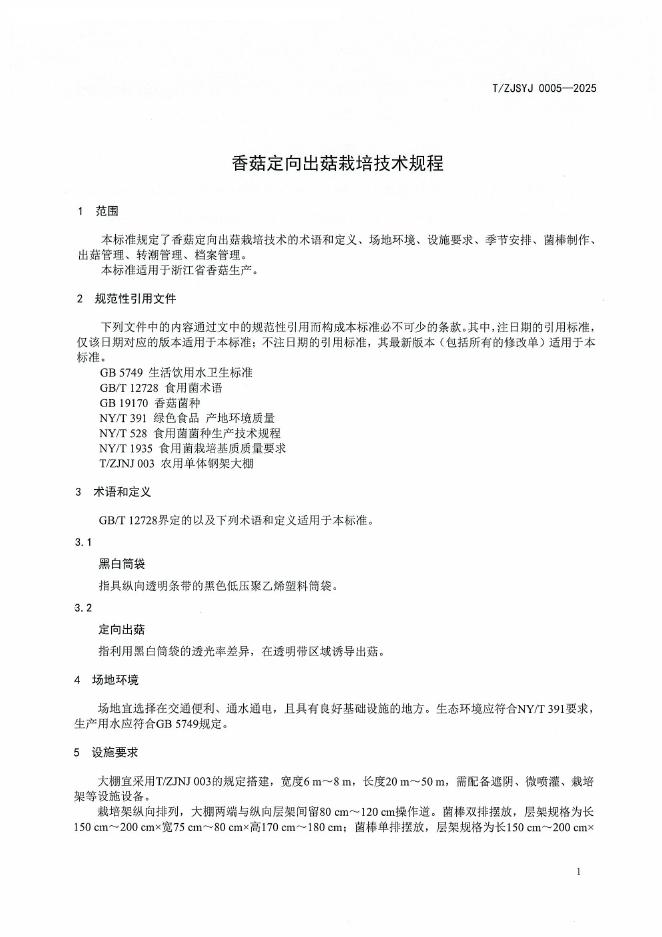 T/ZJSYJ 0005-2025 香菇定向出菇栽培技术规程