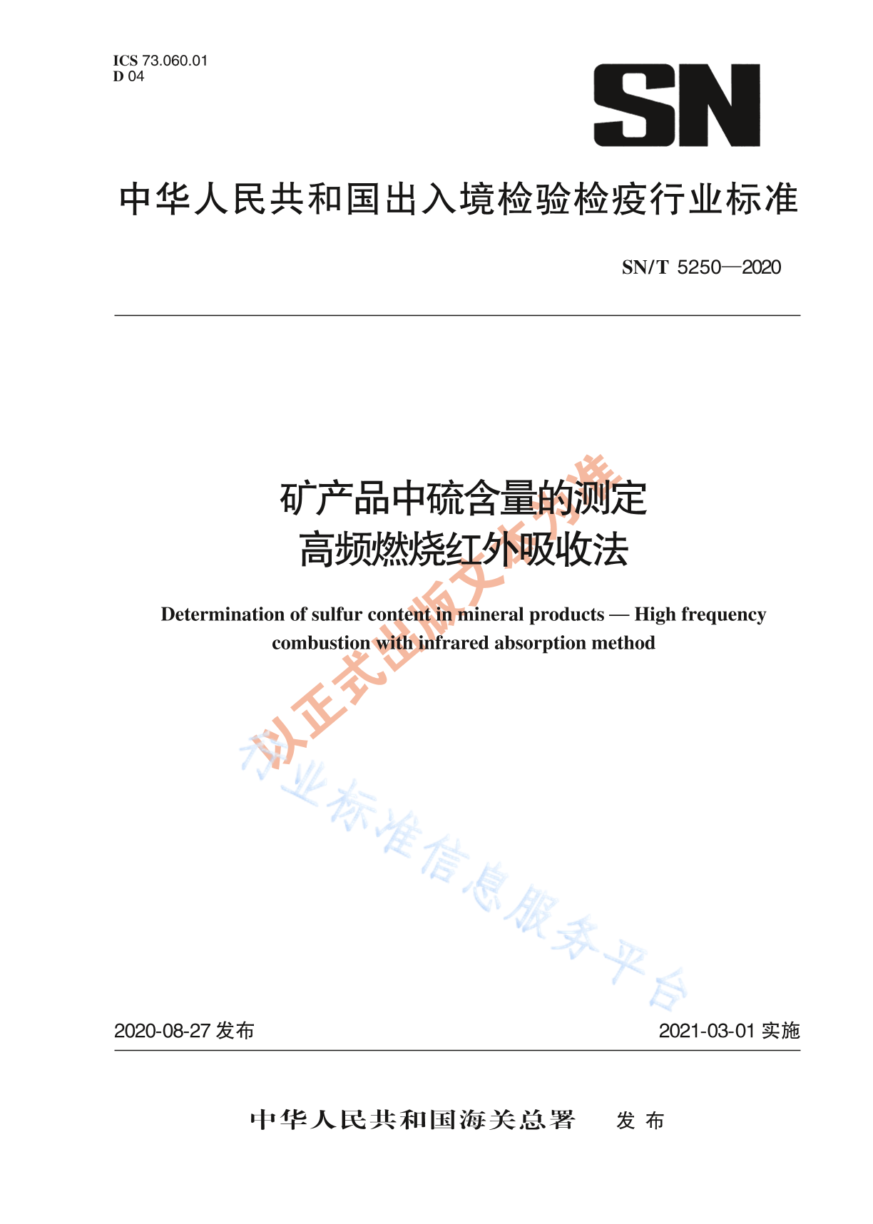 SN/T 5250-2020 矿产品中硫含量的测定 高频燃烧红外吸收法