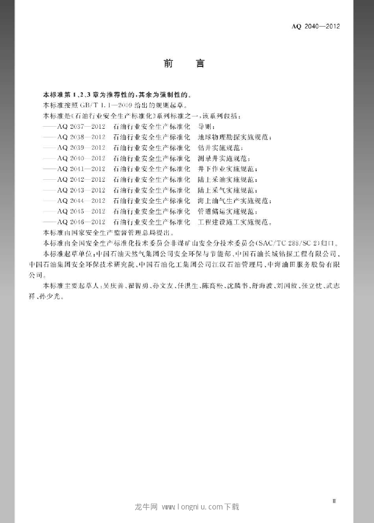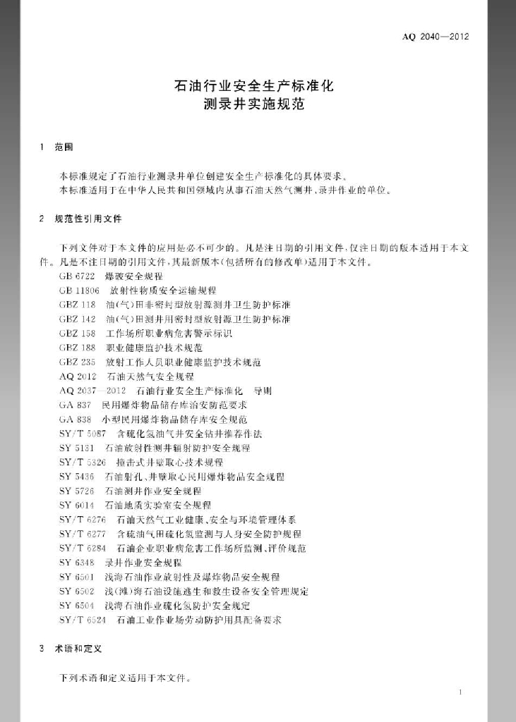 AQ 2040-2012 石油行业安全生产标准化测录井实施规范