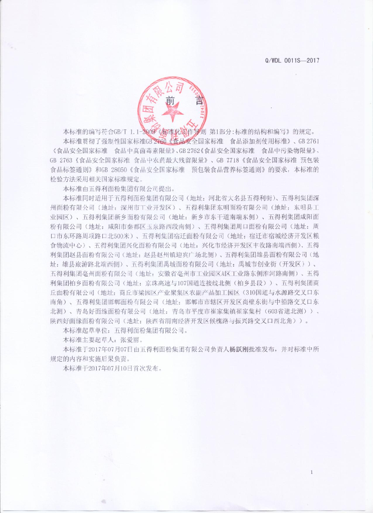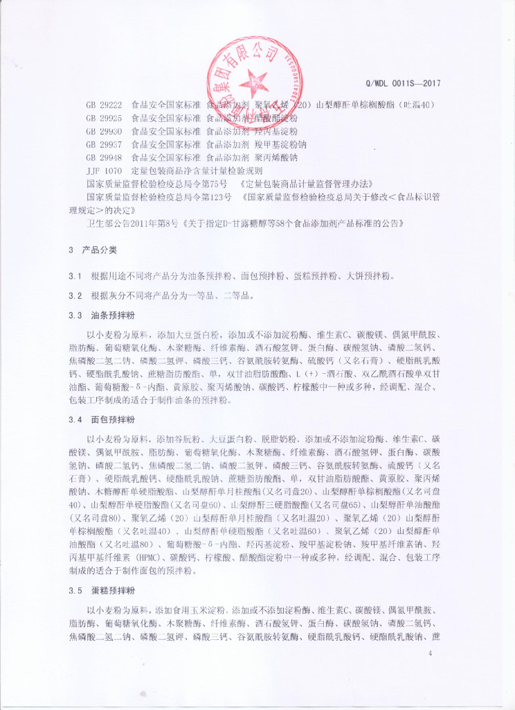 Q/WDL 0011S-2017 预拌粉系列