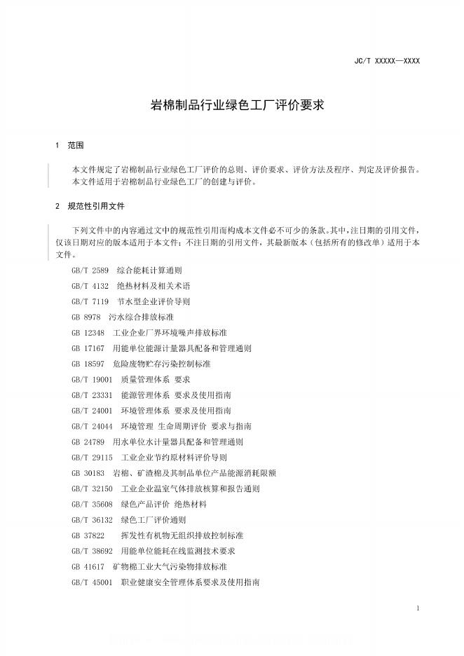 JC/T 2801-2024 岩棉制品行业绿色工厂评价要求(报批稿)