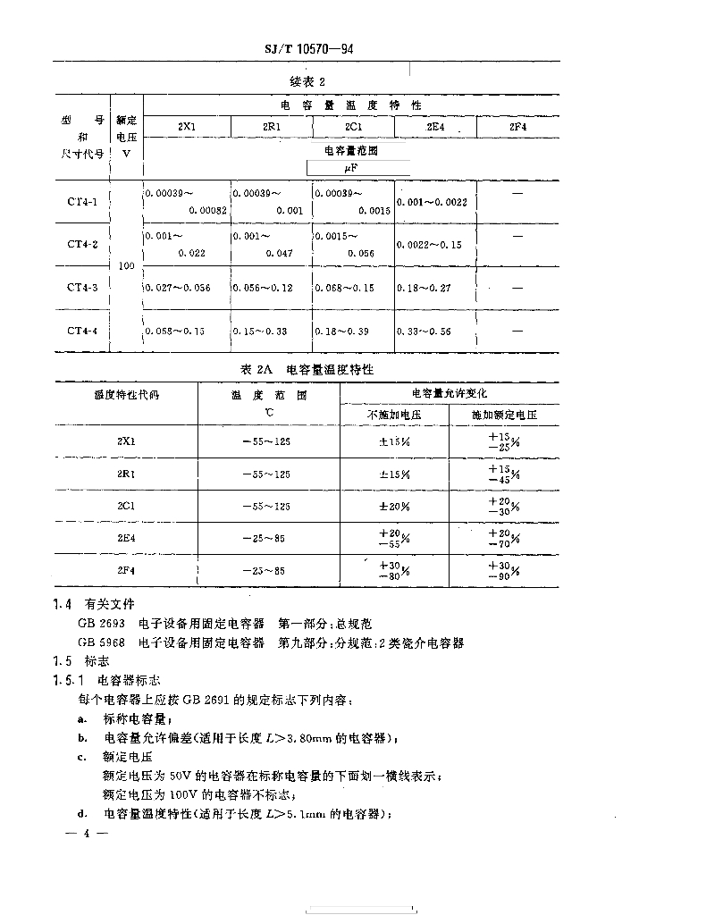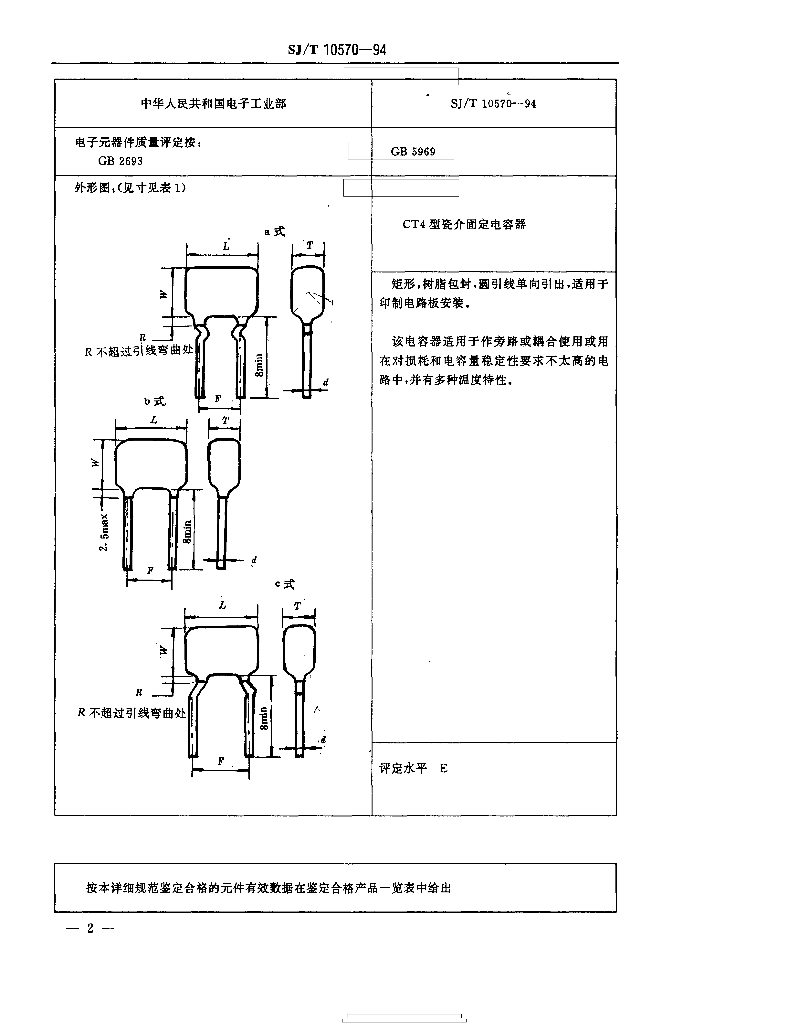 SJ/T 10570-1994 电子元器件详细规范 CT4型瓷介固定电容器 评定水平E