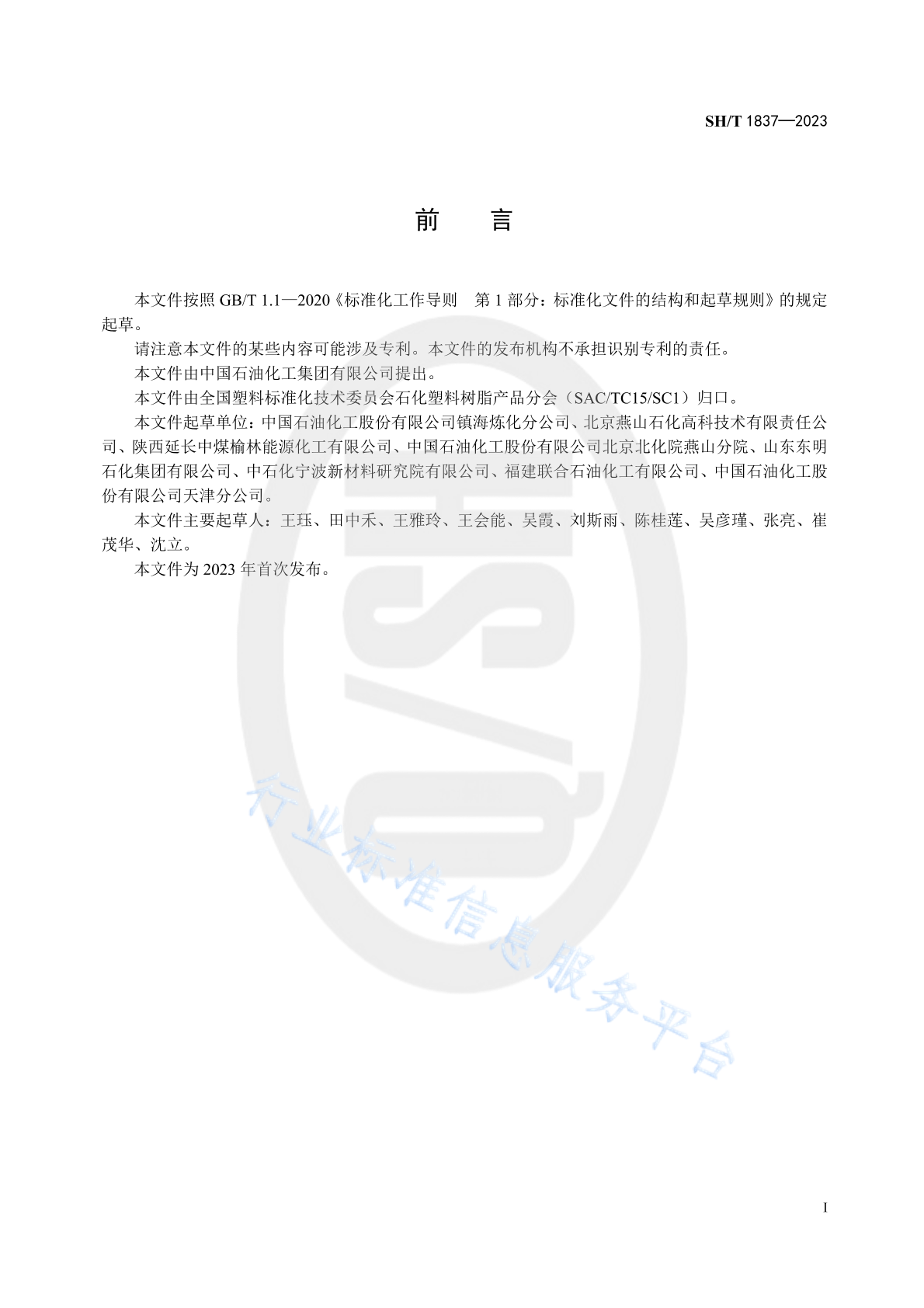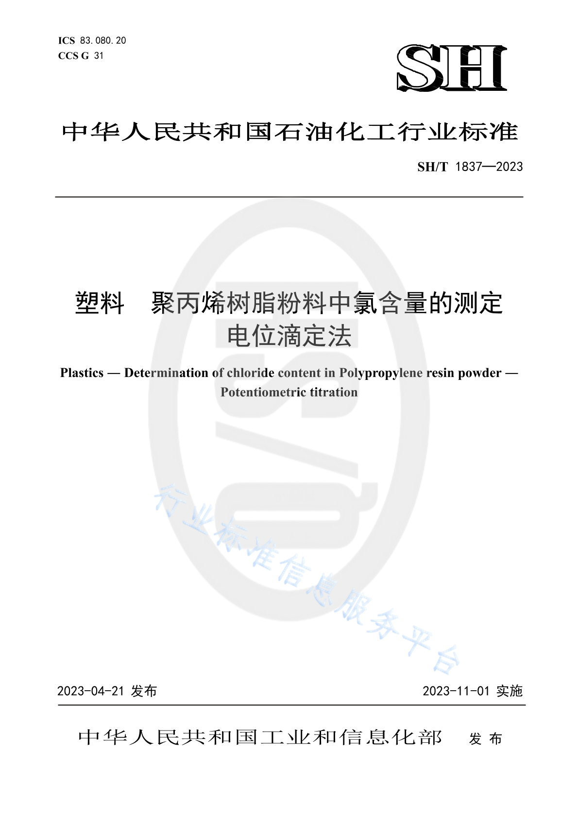 SH/T 1837-2023 塑料 聚丙烯树脂粉料中氯含量的测定 电位滴定法