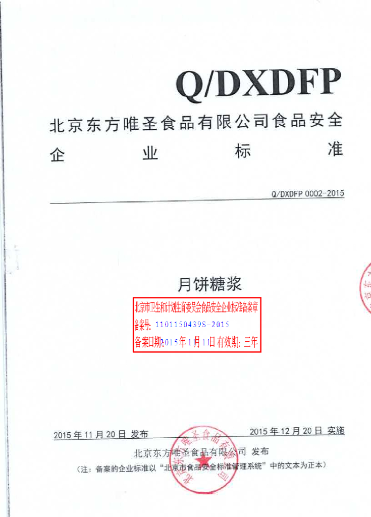 Q/DXDFP 0002-2015 北京东方唯圣食品有限公司 月饼糖浆