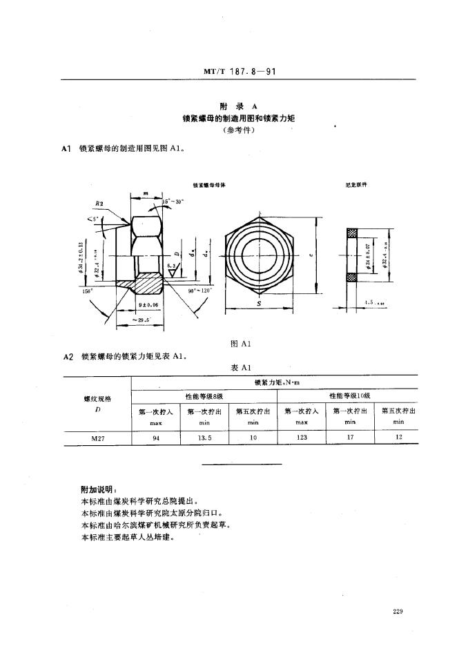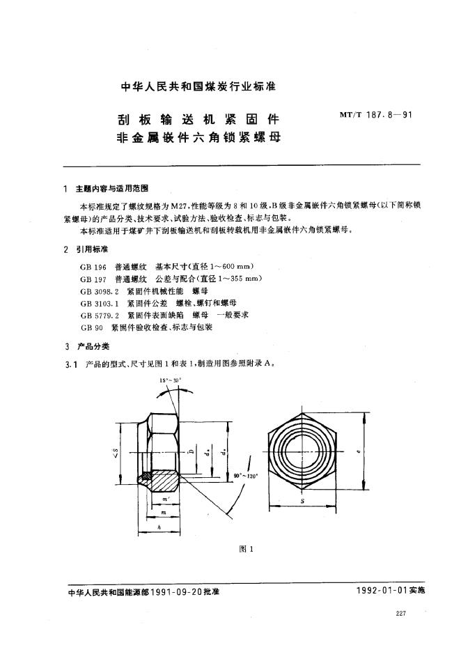 MT/T 250-1991 刮板输送机紧固件非金属嵌件六角锁紧螺母