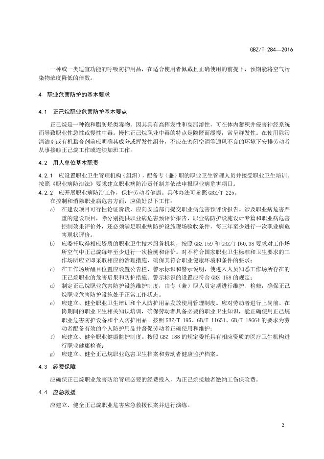 GBZ/T 284-2016 正己烷职业危害防护导则