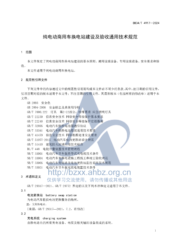 DB34/T 4917-2024 纯电动商用车换电站建设及验收技术规范
