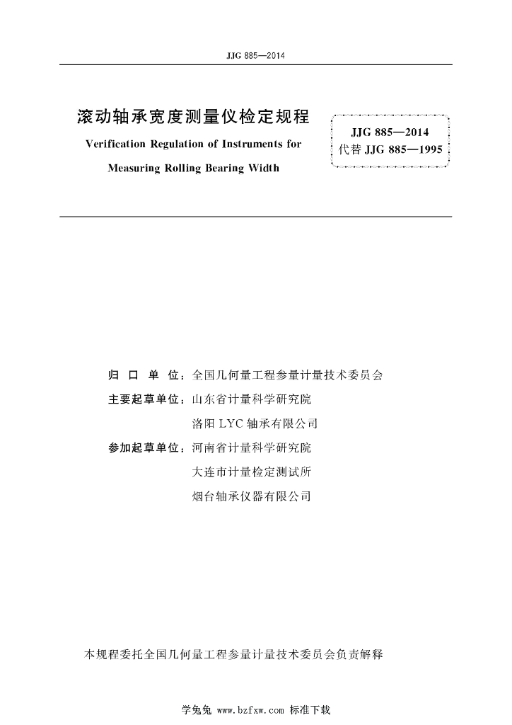 高冉(山东省计量科学研究院)、张健(山东省计量科学研究院)、庞华奇(洛阳LYC轴承有限公司)、刘大忠(山东省计量科学研究院)、范乃胤(河南省计量科学研究院)、王涛(大连市计量检定测试所)、徐琪(烟台轴承仪器有限公司)