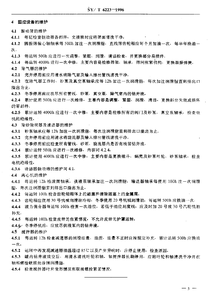 SY/T 6223-1996 固控设备的安装、使用与维护