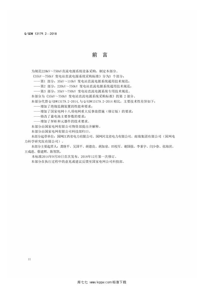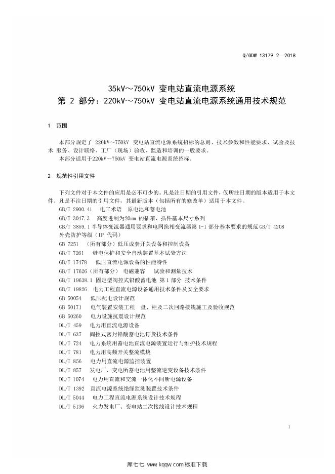 Q/GDW 13179.2 -2018 220kV~750kV 直流电源系统采购标准 第2部分:通用技术规范