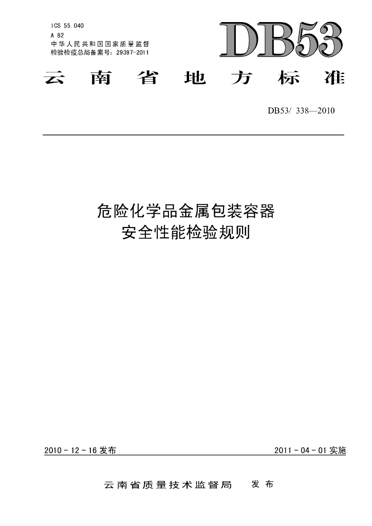 DB53/ 338-2010 危险化学品金属包装容器安全性能检验规则