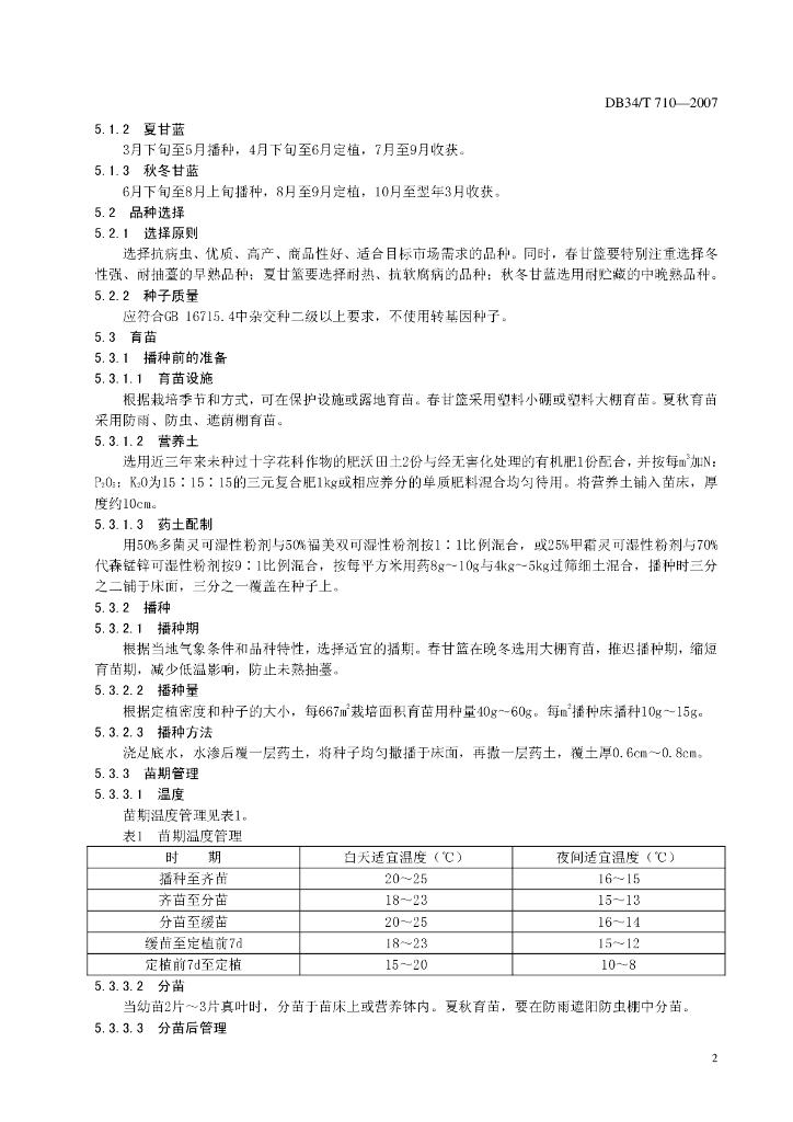 DB34/T 710-2007 绿色食品(A级)结球甘蓝生产技术规程