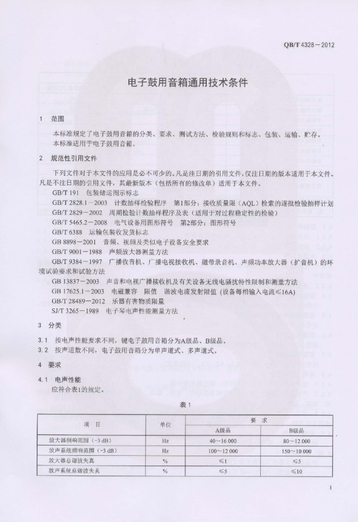 QB/T 4328-2012 电子鼓用音箱通用技术条件