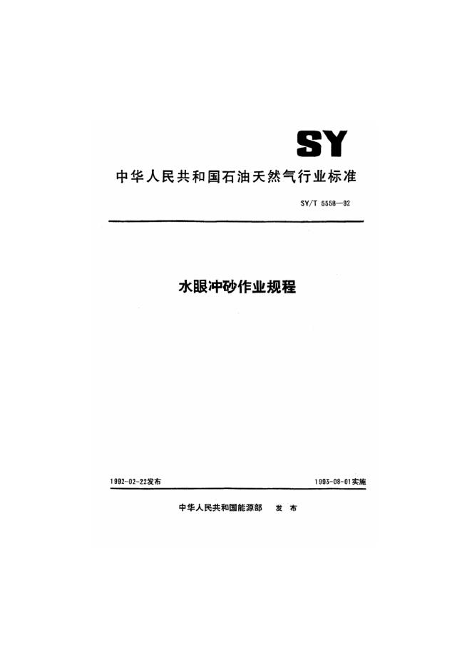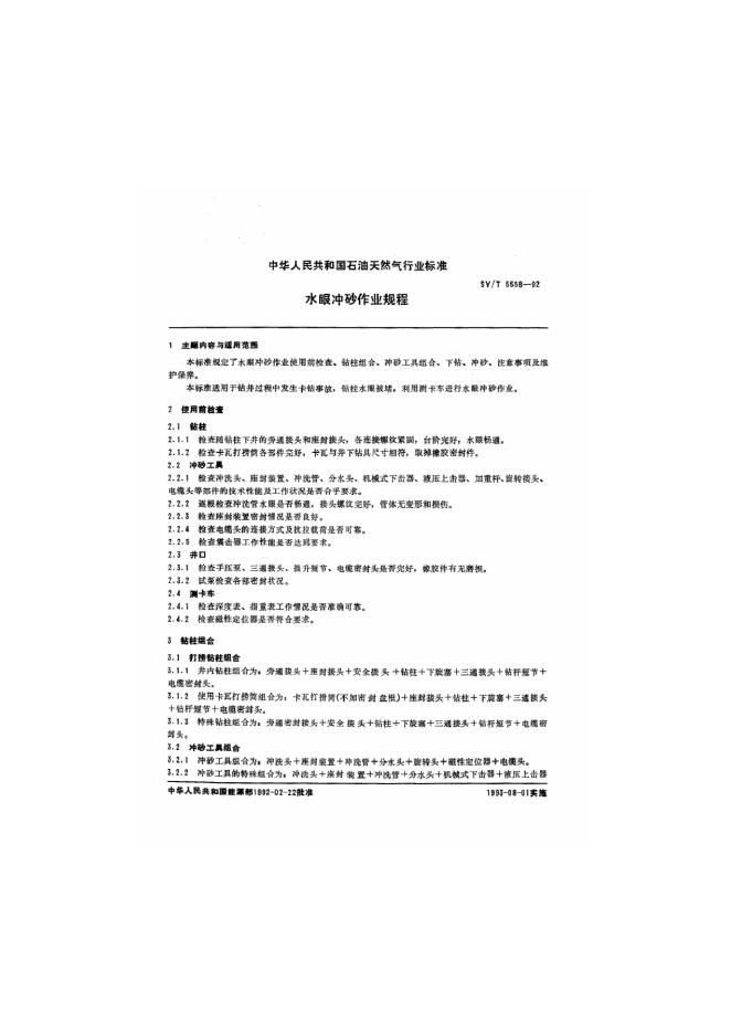SY 5558-1992 水眼冲砂作业规程