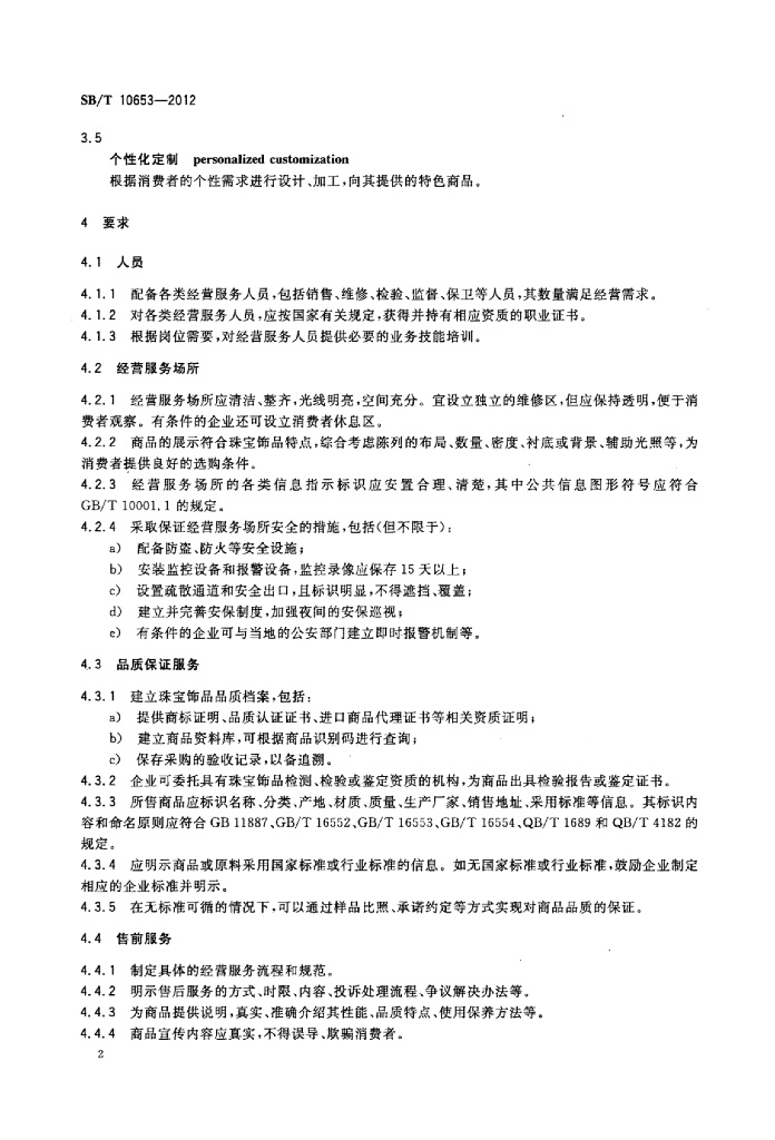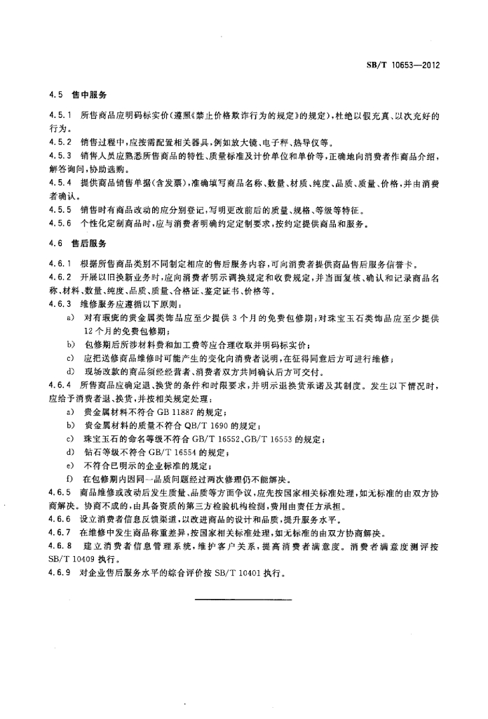 SB/T 10653-2012 珠宝饰品经营服务规范