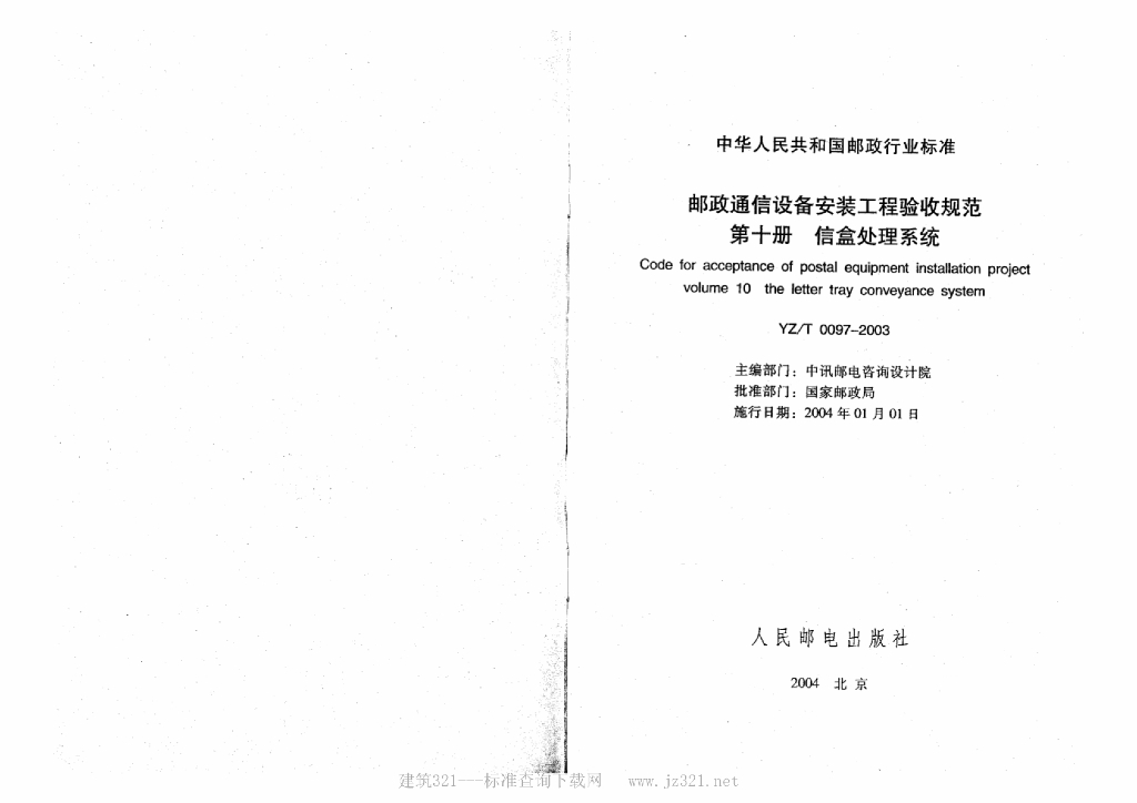 YZ/T 0097-2003 邮政通信设备安装工程验收规范 第十册信盒处理系统