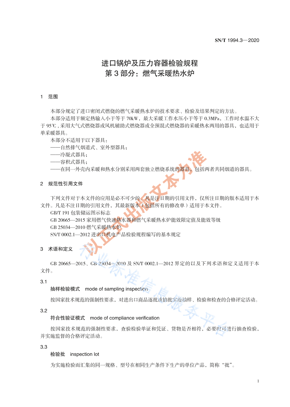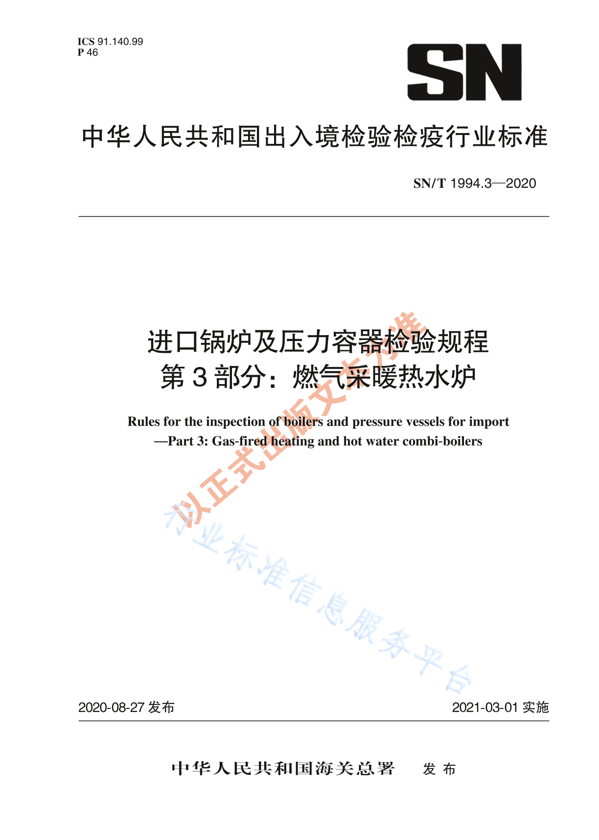 SN/T 1994.3-2020 进口锅炉及压力容器检验规程 第3部分:燃气采暖热水炉