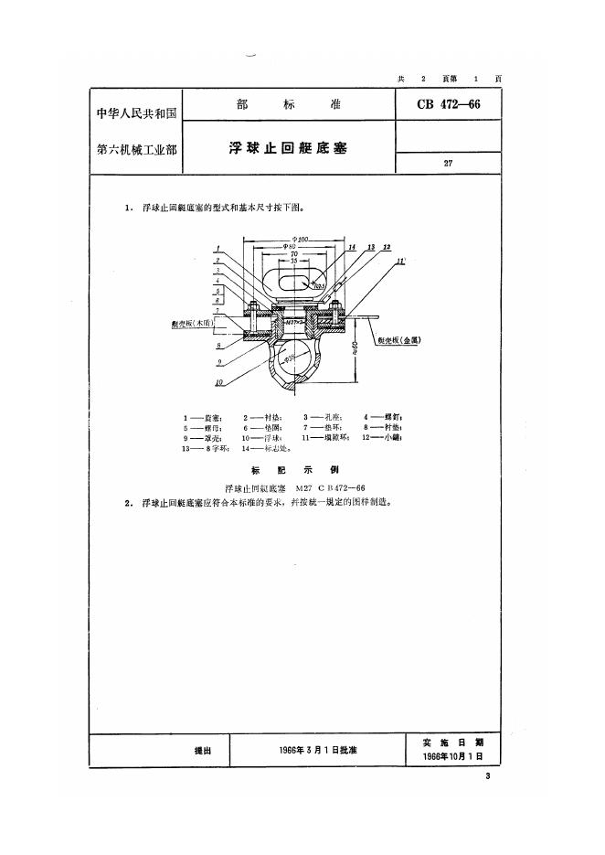 CB 472-1966 浮球止回艇底塞