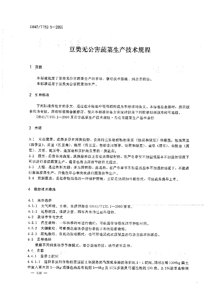 DB41/T 152.5-2000 豆类无公害蔬菜生产技术规程