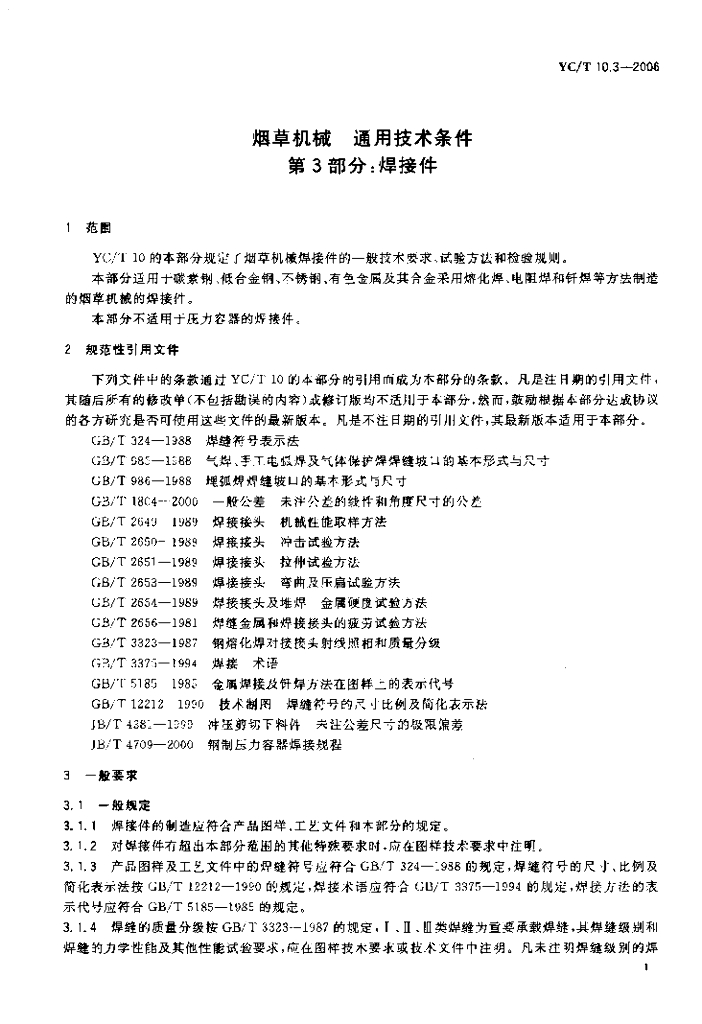 YC/T 10.3-2006 烟草机械 通用技术条件 第3部分:焊接件