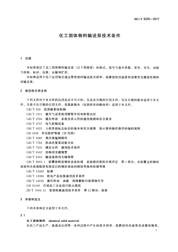 HG/T 5220-2017 化工固体物料输送泵技术条件
