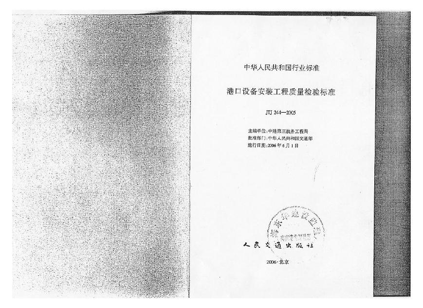 JTJ 244-2005 港口设备安装工程质量检验标准